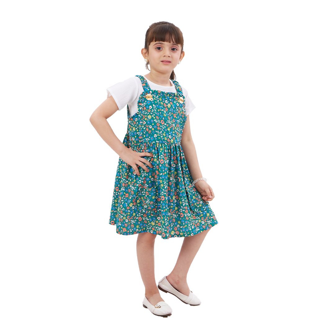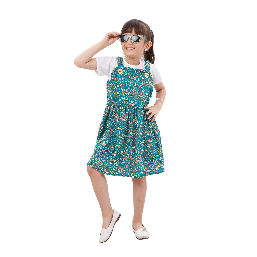 Brighten up your little one’s wardrobe with this charming Girls’ Floral Print Suspender Dress. Perfect for any occasion, this dress combines comfort and style, making it an essential addition to her collection.