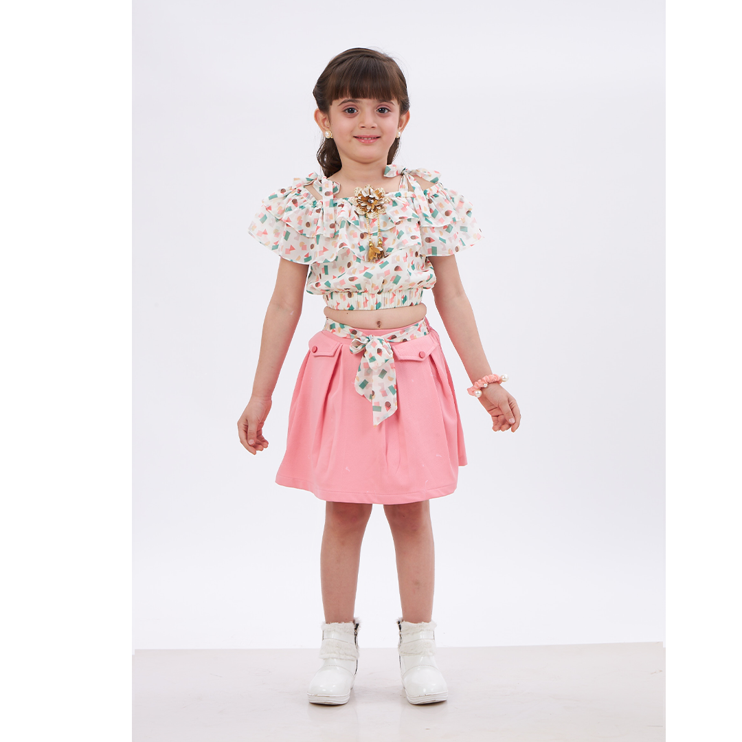 Introducing the Petal Play Two-Piece Set, a delightful ensemble that combines playful patterns with a stylish design. This charming set includes a ruffled crop top and a matching skirt, perfect for adding a touch of fun and flair to your little one’s wardrobe. Ideal for casual outings, playdates, or any special occasion, this outfit ensures your child looks adorable and feels comfortable all day long.